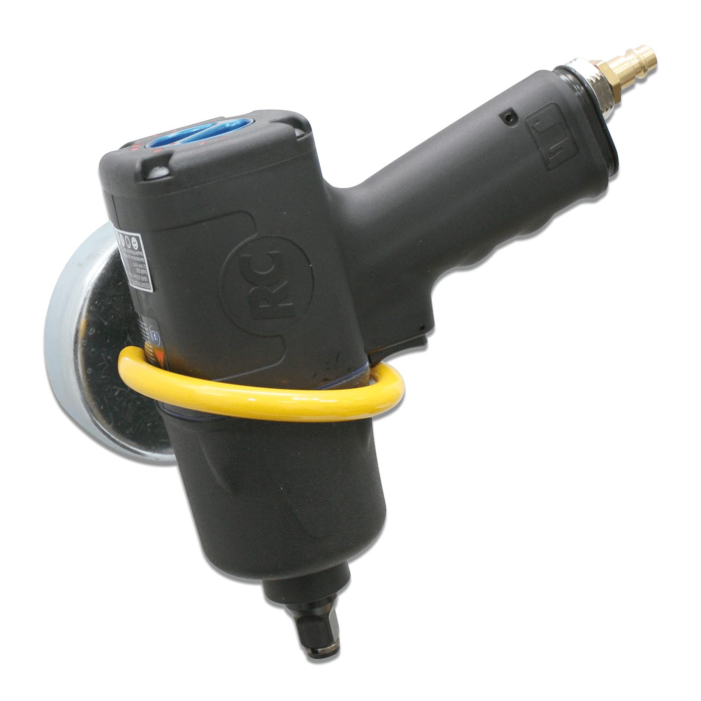 Impact wrench/tool holder for tire service for the safe and professional storage of impact wrenches, . With a magnet for attachment directly to the lift. A plastic coating in a high-visibility colour ensures increased work safety and efficiency, especially during peak tire season. No more bending, searching for, or tripping over an impact wrench or similar tool lying on the floor.