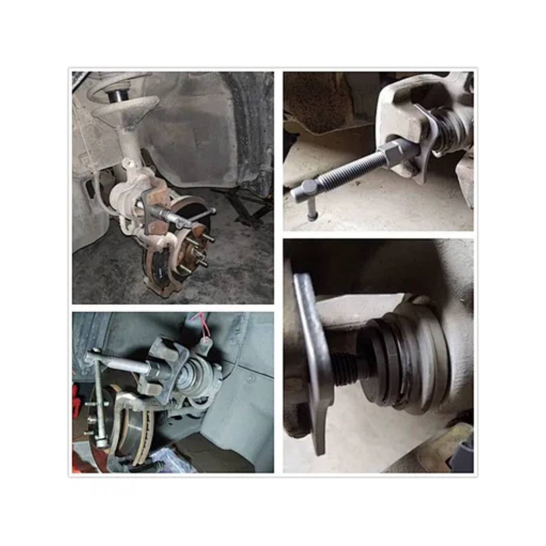 Winds back brake piston for replacing brake pads. Fits most cars. Suitable for push-back and wind-back brake pistons. Includes left-handed and right-handed wind back screw,