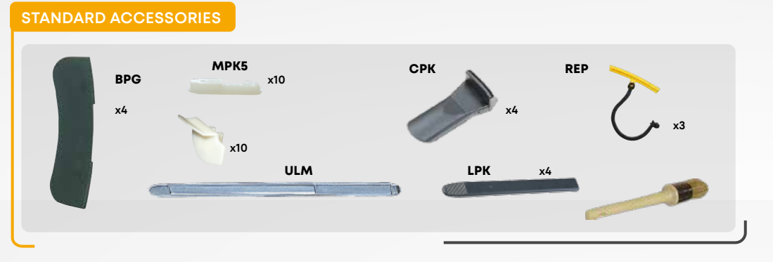 - Rear air tank to CE standards, for rapid bead insertion on tubeless wheels, using a jet of air from the clamps