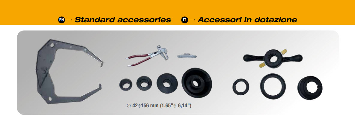 Version with manual wheel clamping system with automatic input of wheel diameter and distance.