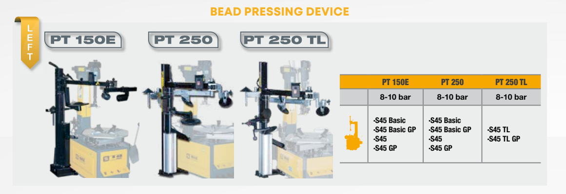 • Double acting stainless steel high performance bead breaking cylinder (31kN bead breaking force).