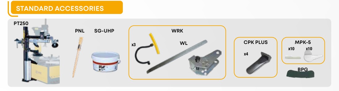 • Powerful bead breaker with articulated blade and enlarged wheel pad.